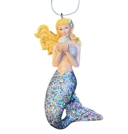 Glittered Peacock Ornament 4.5 inch Blue Teal Purple