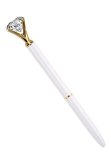 - Color: White Metal Pen Body with Gold Accents and Clear Crystal Diamond Gem.